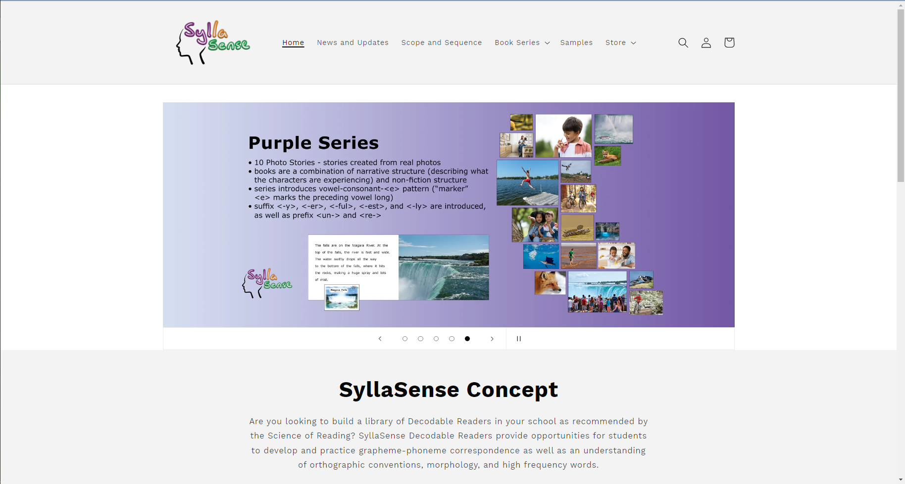 I created and designed the website for SyllaSense Publishing. The goal was to create an minimalistic and easy to navigate site to help promote educational decodable readers to schools.